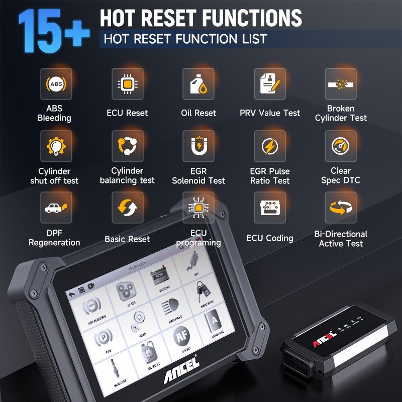 Supporting 25 most commonly used service Reset Functions: ABS Bleeding, AT Set, Battery, DPF, EPB, Gear, Headlight, IMMO Keys, Injector, Oil Reset, A/F Set, Language, NOx Set, Pump, Seat Set, Star&Stop, Tire Set, Transport, Urea Set, Door&Windows, SAS, Sunroof, Suspension, Throttle, TPMS (Due to variations in country of manufacture, model year, and brand, we recommend that you provide detailed information about your vehicle to our customer service for compatibility verification before purchasing.)