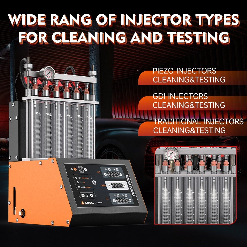 - In view of the increasing maturity and use of the Gasoline direct injection, ANCEL has released the ANJ600 GDI+Piezo Injector Cleaner and Tester machine in 2024. Gasoline direct injection is a technology that injects fuel directly into the cylinder and mixes it with the intake air. Compared to conventional injectors, the use of GDI can help improve engine efficiency and specific power output as well as reduce exhaust emissions. ANJ600 not only supports GDI, EFI, FSI and other types of fuel injectors, but also compatible with common standard fuel injectors. The ANJ600 is available in 110V voltages to drive the GDI injectors, which basically covers the injectors of the majority vehicle brands in Europe, America and Asia.