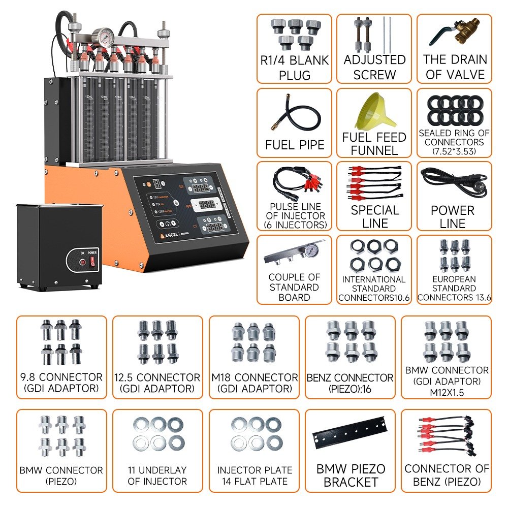 ANCEL ANJ600 GDI+Piezo Fuel Injector Cleaner Fuel Injector Tester for Gasoline Car 6 Cylinders for 110V